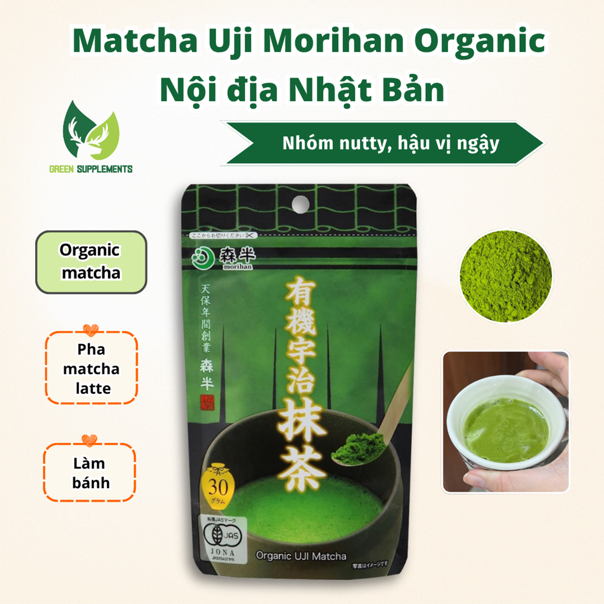 ❖ Bột Morihan Organic Uji Matcha đạt chứng nhận JAS Organic - “thước đo” chuẩn mực về sản phẩm hữu cơ sạch.