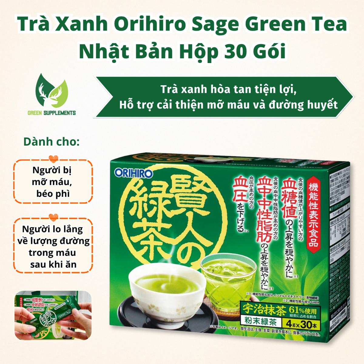 ❖ Sản phẩm Trà Xanh Orihiro Sage Green Tea với thành phần Isomaltodextrin dưới dạng chất xơ kết hợp với hoạt chất GABA giúp ổn định đường huyết, kiểm soát cholesterol, giảm mỡ máu, giảm stress, tăng cường miễn dịch.