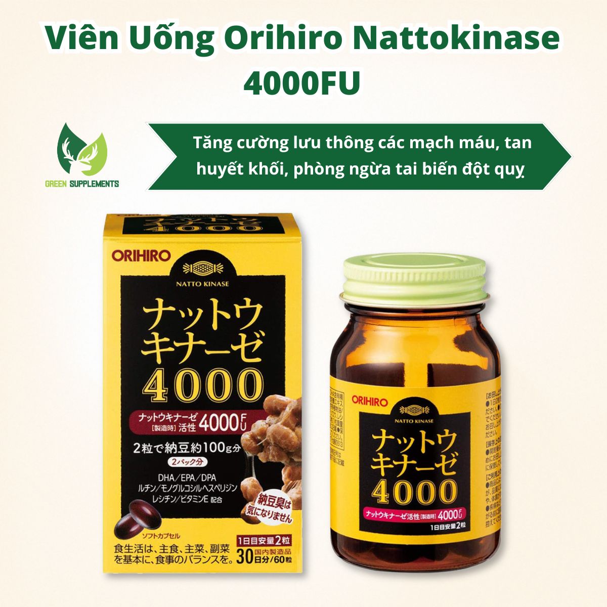 ❖ Viên Uống Phòng Ngừa Tai Biến Đột Quỵ Orihiro Nattokinase 4000FU là một sản phẩm mới đang được yêu thích trên thị trường. Với hàm lượng lên đến 4000FU, Nattokinase của Nhật sẽ giúp phá tan cục máu đông, tăng tuần hoàn máu, ổn định huyết áp, bảo vệ tim mạch. Ngoài ra, sử dụng Natto còn rất tốt cho trí nhớ, nhận thức, giúp cải thiện chức năng của não bộ. Sản phẩm được sản xuất trên quy trình khép kín hiện đại, đáp ứng được yêu cầu kiểm định nghiêm ngặt về chất lượng và an toàn.